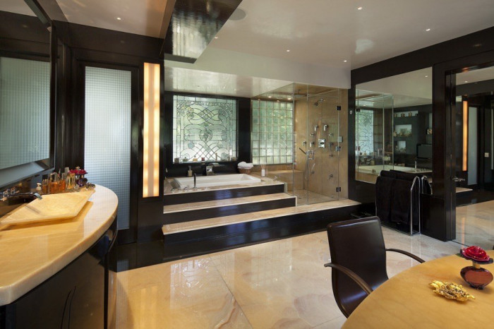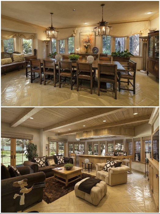 Также обустроили поле для гольфа на девять лунок, корт для тенниса, открытый бассейн и даже автокорт со своим собственным сервисным гаражом. Поговаривают, что на покупке именно этого особняка настояла новая возлюбленная Джеффа Безоса Лорен Санчес, именно в нем и планирует жить пара. Как после этого изменится интерьер самого особняка, пока никто не знает, но на данный момент он выглядит так, как его создали предыдущие владельцы.