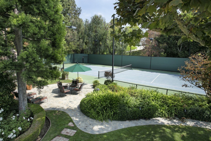 На территории усадьбы в Беверли-Хиллз есть теннисный корт (Лос-Анджелес, США). | Фото: variety.com.