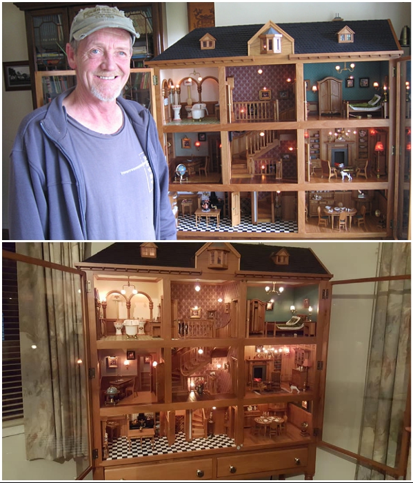 Талантливому краснодеревщику понадобилось чуть больше года, чтобы построить миниатюрный особняк (работа Henk Verhoeff). | Фото: stuff.co.nz.