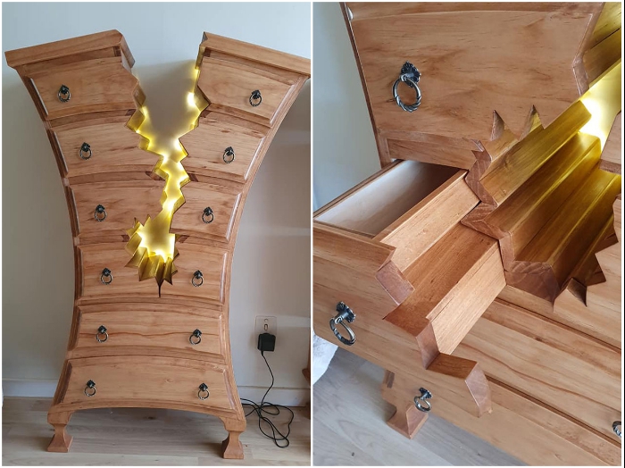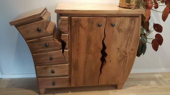 Несмотря на явную деформацию и жуткие «разломы», созданная талантливым мастером мебель вполне функциональна (работы Henk Verhoeff). | Фото: boredpanda.com.
