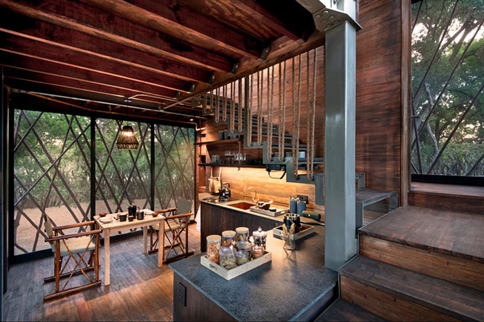 К услугам гостей необычной резиденции обустроена полноценная кухня («Ngala Treehouse», Kruger National Park). | Фото: officiel-online.com.