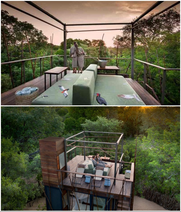 Терраса на крыше может быть и гостиной, и спальней под открытым небом («Ngala Treehouse», Kruger National Park). | Фото: africansafariexperts.com/ officiel-online.com.