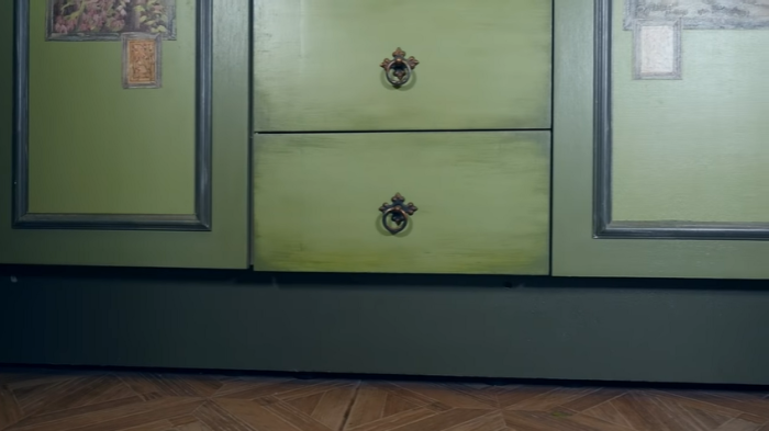 Изначально ящики и дверцы были ровные и гладкие, без всяких фигурных украшений или резьбы, но супругам хотелось добавить изюминку, чтобы впоследствии воплотить еще одну мечту. Поэтому в качестве отделки они решили приклеить деревянные молдинги, но нужного размера им найти не удалось, поэтому они нашли практичный выход из положения. Экспериментаторы приобрели пенополиуретановые накладные планки, которые прекрасно подгоняются под нужные габариты и при этом довольно прочные и долговечные. Перед тем, как приклеить импровизированные молдинги, хозяйка их покрасила и выдержала нужное количество времени, чтобы они хорошенько высохли.