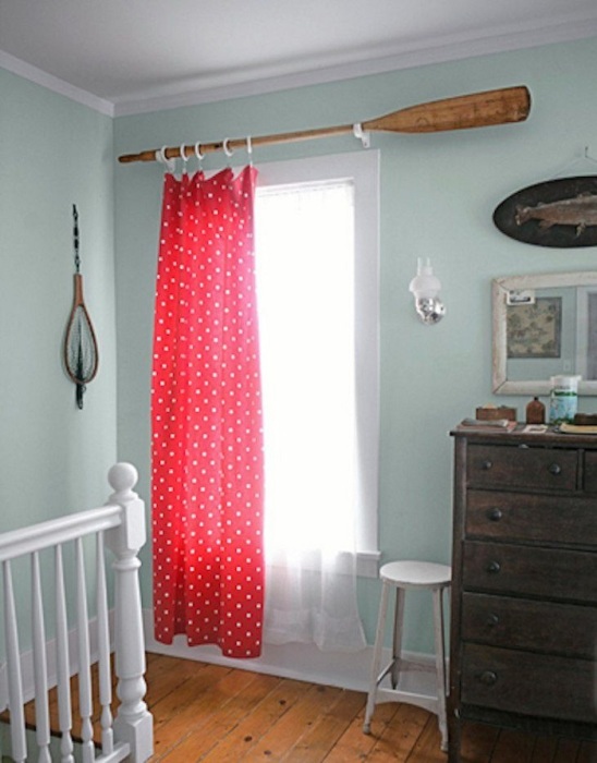Весло станет оригинальным карнизом для штор. / Фото: Tr.pinterest.com