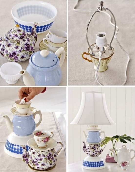 Если склеить чашки между собой, можно получить необычную ножку для лампы. / Фото: Pinterest.nz