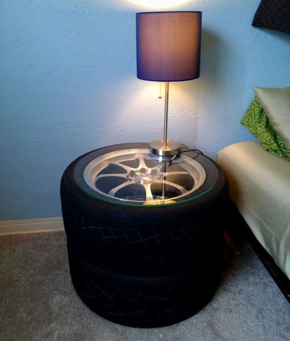 Прикроватна тумбочка, сделанная из автомобильных покрышек. / Фото: Englishpromo.ru