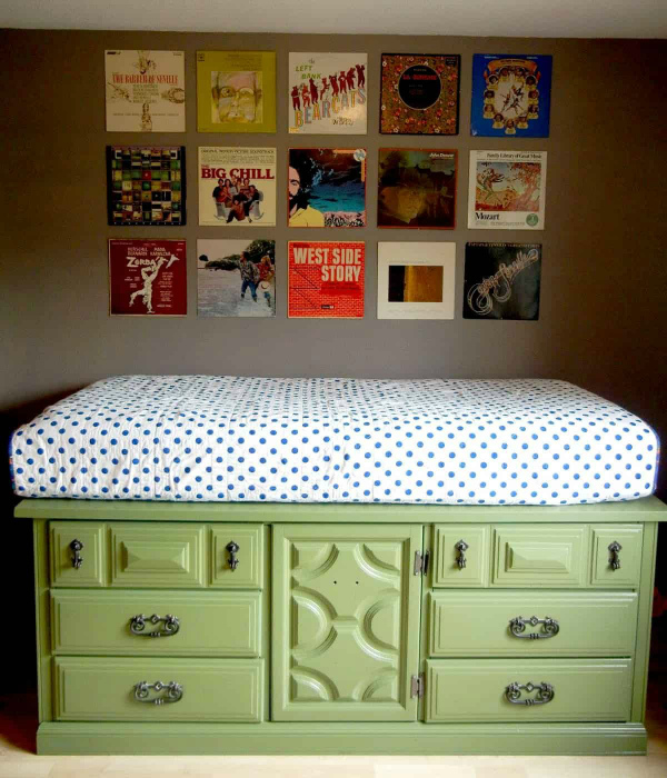 Низкий комод-диванчик. | Фото: Pinterest. Хорошей идеей для хранения вещей может стать низкий комод с диванчиком и выдвижными шкафчиками. Такой можно поставить в изножье кровати или у любой свободной стены и использовать для хранения нижнего белья, брюк и свитеров.