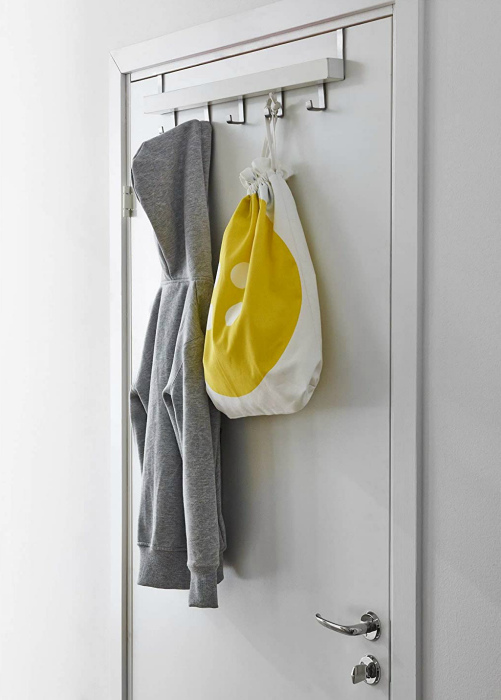 Вешалка для одежды на двери. | Фото: Percheros. Если шкаф ломится от одежды и все вещи являются нужными, придется искать альтернативные пути хранения. В первую очередь, рекомендуем обратить внимание на внутреннюю сторону межкомнатной двери. Несколько крючков и вот, это уже не просто дверь, а вешалка для спортивных курток, кофт, плащей и пальто. Лучше всего таким образом хранить вещи, которые вы носите каждый день, чтобы лишний раз не рыться в шкафу в поисках нужного.