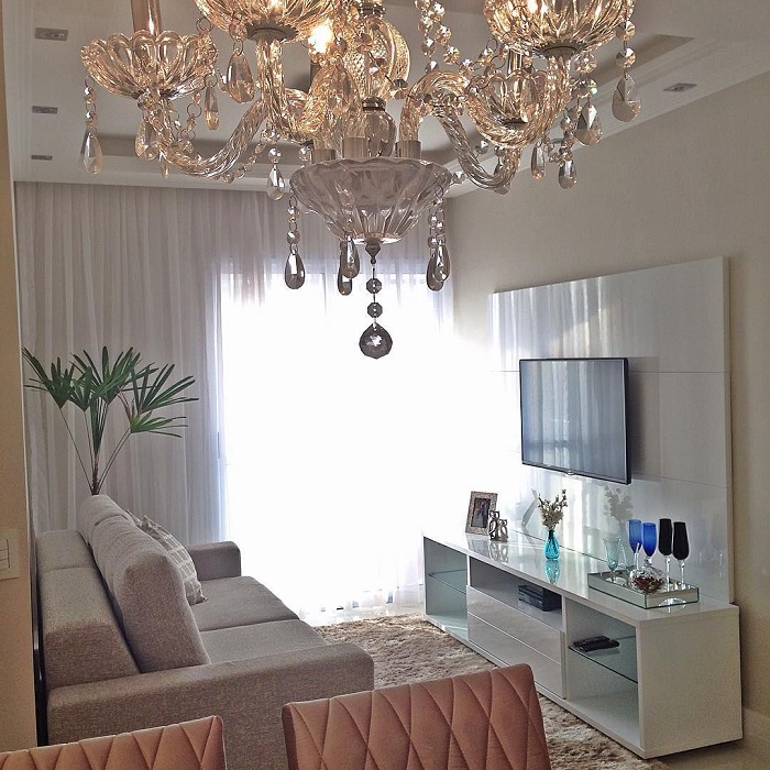 Люстры постепенно выходят из моды, уступая место точечным светильникам, настенным лампам, торшерам и прочим лаконичным осветительным приборам. Особенно некрасиво смотрится масштабная свисающая с потолка люстра с массой украшений. Если она присутствует в большом помещении с высоким потолком, ситуация не такая критичная. А вот маленькая комната сразу съеживается от такого «соседства» – люстра утяжеляет потолок, делает интерьер тяжелым и переполненным. Кроме того, к масштабной люстре очень сложно подобрать другие светильники. А учитывая тот факт, что в любой комнате должно быть несколько сценариев освещения, без дополнительного света не обойтись. Вместо крупных люстр лучше подбирать аккуратные геометрические варианты, которые не будут привлекать к себе слишком много внимания. Либо остановите свой выбор на точечном освещении – его можно регулировать и компоновать с другими приборами.