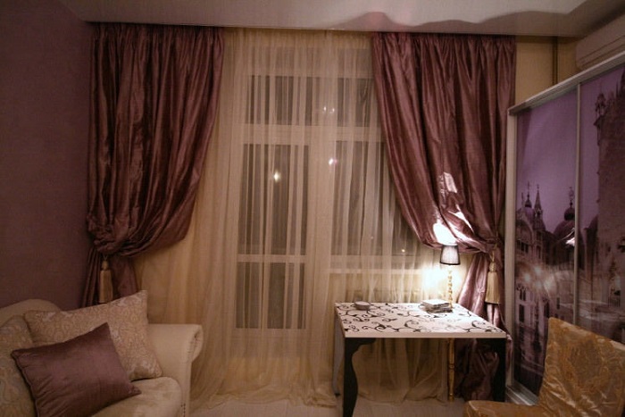 Шторы часто используют в качестве яркого акцента в интерьере. Однако массивные бархатные или велюровые гардины, которые прекрасно смотрятся в просторных помещениях, совсем по-другому выглядят в маленьких комнатах. Они зрительно сужают имеющуюся площадь, создают визуальный шум и перетягивают все внимание на себя. Кроме того, шторы, которые достают до пола, являются пылесборниками, и отличной игрушкой для детей, а также домашних любимцев. Поэтому лучше всего отказаться от тяжелых экземпляров в пол и вместо них приобрести легкие занавески, которые будут свисать на 10-15 см ниже подоконника. Если речь идет о кухне, можно ограничиться римскими шторами. Совет: Чтобы зрительно расширить или приподнять окно, необходимо вешать карниз выше окна, либо подбирать модель шире оконного проема.