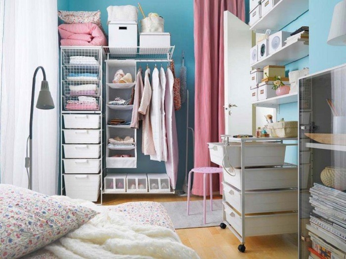 Выбор цвета для оформления маленькой комнаты является самым важным вопросом, которому необходимо уделить максимум внимания. В качестве базы необходимо выбирать светлые оттенки: бежевый, белый, серый, небесно-голубой, пудровый и так далее. А вот яркие цвета, по типу желтого, красного, бирюзового лучше применять дозировано и в качестве акцентов. Если переборщить, то комната не только визуально станет меньше, но также со временем начнет раздражать.
