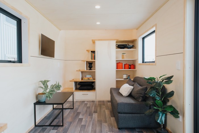 Современная тенденция к уменьшению жилой площади заставляет архитекторов и дизайнеров проектировать уникальные модели, в которых можно комфортно жить целой семьей. Так, например, новозеландские разработчики умудрились создать крошечный мобильный дом сразу с двумя спальнями, полноценной кухней, ванной комнатой и даже просторной гостиной и все это на 19,2 «квадратах». В нем может разместиться на ночлег до 6 человек, причем на полу спать никто не будет.