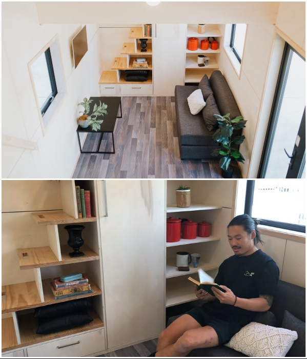 Гостиная получилась довольно просторная и стильная («Home Haven»). | Фото: newatlas.com.