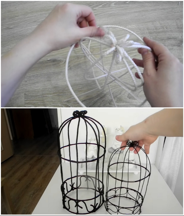 Несмотря на то, что старый светильник был в нормальном состоянии хозяйка решила придать интерьеру оригинальность и принялась за создание декоративной клетки. А вдохновил ее на такой эксперимент мастер-класс еще от одной рукодельницы обнаруженный на просторах интернета. Чтобы не углубляться в описание процесса, предлагаем посмотреть видеоролик, который и подтолкнул Екатерину на конструирование собственного шедевра.