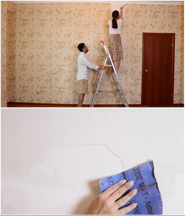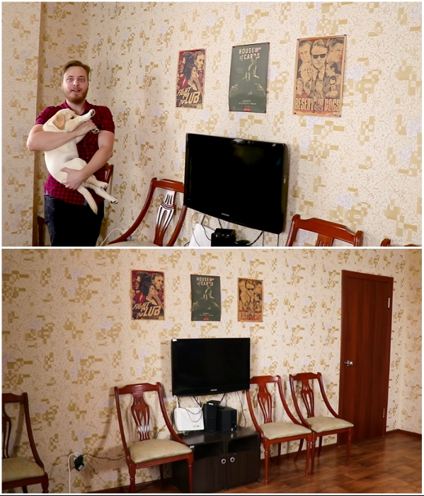 После «инспекции» жилплощади и обсуждения друзья приступили к делу. Чтобы начать ремонтные работы, необходимо освободить комнату от лишней мебели (в идеале от всего, что есть!), а потом начинать снимать обои.