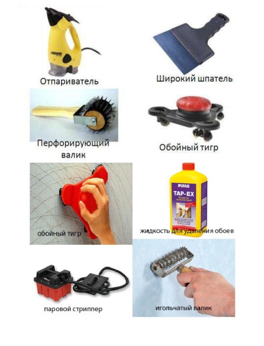 Самые популярные инструменты/приспособления для снятия старых обоев. | Фото: remstroiblog.ru.