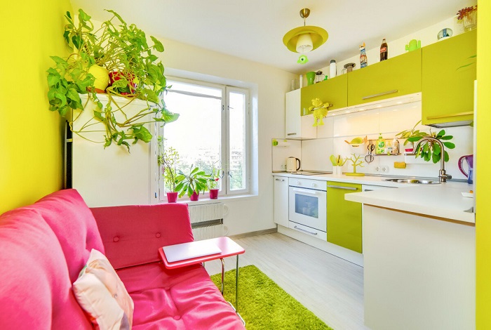 Обратите внимание: При оформлении маленьких квартир яркие цвета лучше использовать исключительно в качестве акцентов, так как в больших количествах они могут визуально уменьшить пространство.