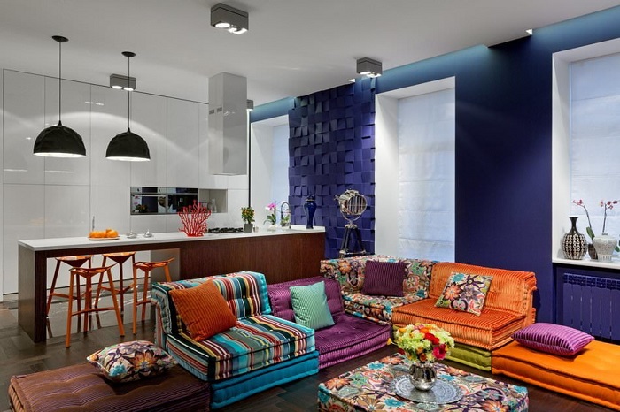 Несколько лет в моде был минимализм и скандинавский стиль. Для них было характерно использование светлых оттенков, нейтральной мебели, лаконичных аксессуаров. Посчитав эти направления скучными, дизайнеры пустились во все тяжкие, предложив сочетать в одном интерьере несколько ярких цветов. Фанатам сочных оттенков эта идея пришлась по душе, и стало появляться все больше квартир с многоцветными интерьерами.