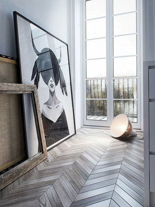 Картины и постеры всегда висели на стене – этот тренд был неизменным на протяжении многих столетий. Однако с недавних пор дизайнеры решили внести некоторые коррективы и в эту тенденцию – теперь картины, постеры в рамках располагают прямо на полу и прислоненные к стене. Получилась эдакая изюминка в декорировании интерьера. Этот прием имеет как положительные, так и отрицательные стороны. Например, он может выручить жильцов старых домов, в которых из соображений безопасности на стену нельзя вешать ничего тяжелого. Также размещать картины на полу могут люди, проживающие в съемных квартирах – часто хозяева запрещают вбивать в стену гвозди или использовать декоративные наклейки.