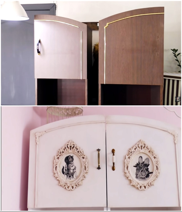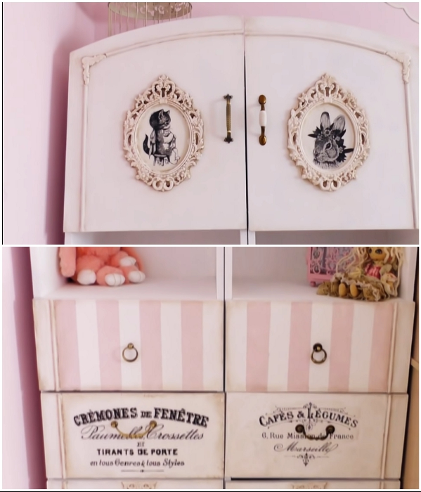Когда креативная девушка увидела объявление о продаже двух шкафов из старой мебельной стенки, то, не задумываясь, приобрела их, ведь уже тогда у нее возникла идея необычной переделке. Планировался ремонт детской комнаты для дочурки, поэтому заботливая мама искала интересные идеи и предметы, чтобы превратить их в необычные детали дизайна. Учитывая, что девушка не является профессиональным дизайнером или мебельщиком-реставратором, она выбирала варианты трансформации на просторах интернета. С некоторыми техниками она уже сталкивалась в процессе предыдущих переделок, а другие как раз испытывала и видоизменяла, снимая весь процесс на видео. Благодаря этому и мы сможем увидеть результат ее работы и почерпнуть много интересного и полезного – вдруг пригодится.