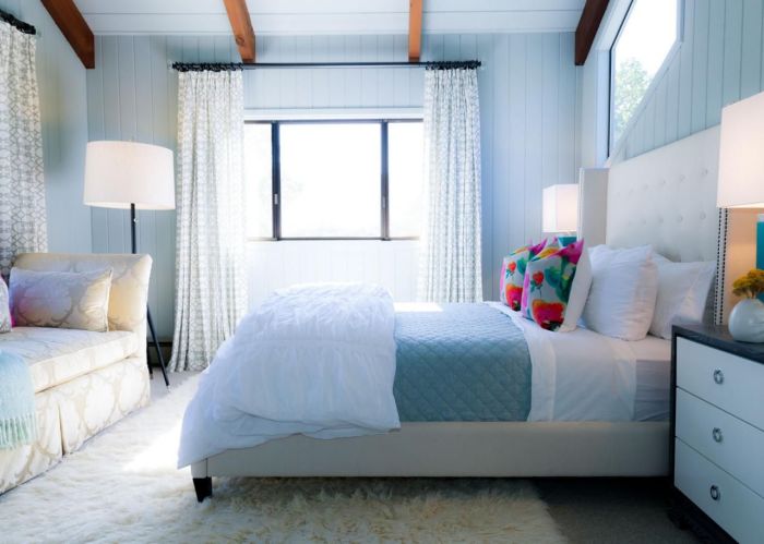 Классическое сочетание белого и голубого — идеальный вариант для оформления спальни. /Фото: i.pinimg.com