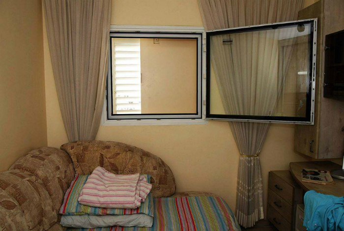 Защищенные комнаты в Израиле. | Фото: Booking.com. Многие люди в Израиле живут в постоянном страхе из-за возможности военных конфликтов. Особенно остро это чувствуется в районах, находящихся в непосредственной близости от границы, которые время от времени подвергаются ракетным обстрелам. С целью защиты в израильских квартирах строят защищенные комнаты, именуемые мамак. В многоквартирных домах также есть комнаты-бомбоубежища, которые называются мамад и рассчитаны на несколько семей. Эти комнаты имеют герметично закрываемое окно и укрепленные стены, способные защитить жителей дома от обстрелов. В мирные дни эти комнаты являются обычными жилыми помещениями.