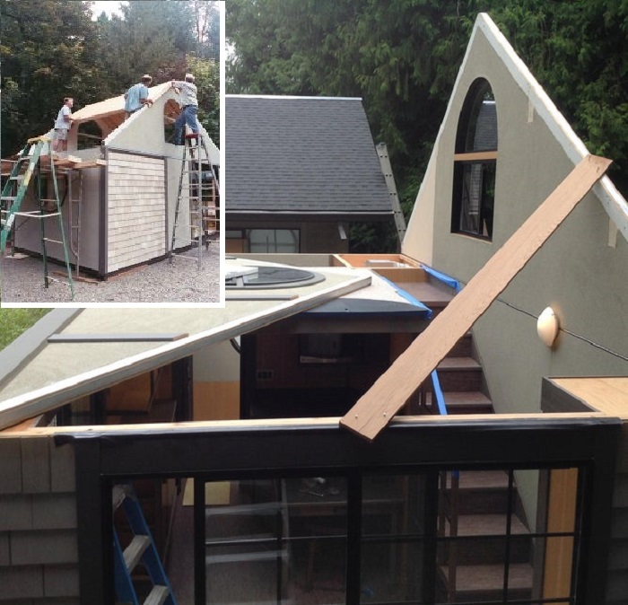 Только лишь для создания крыши понадобились помощники, со всеми остальными процессами Крис Хэйнинг справился сам. | Фото: indy100.com/ tinyhousetalk.com.