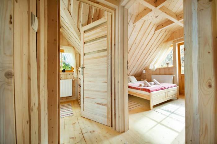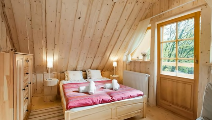 Вторая спальня совсем крошечная, но не менее комфортная, так что провести ночь в уютном месте с умопомрачительным запахом древесины, источаемым всеми элементами интерьера, обязательно получится.