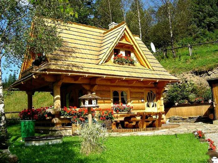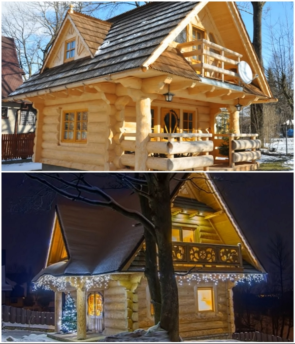 По обыкновению, авторы Novate.Ru не смогли пройти мимо такой оригинальной модели, поэтому каждый, заглянувший на эту страницу, может сполна насладиться обзором сказочного домика. Уже на подходе к мини-коттеджу, созданному в деревенском стиле, можно заметить его надежный бревенчатый фасад, резные декоративные элементы ручной работы, деревянную черепицу, созданную по старинным технологиям, довольно большую веранду и балкон, которые притягивают взор и рисуют картинки увлекательного отдыха на свежем воздухе.