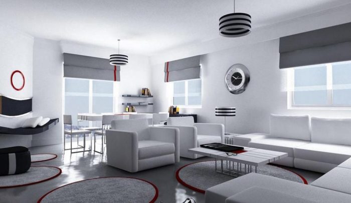 Безупречное сочетание серого и белого в стиле хай-тек. /Фото: belady.online Для создания современного и стильного интерьера тандем серого и белого оттенков — идеальный вариант. Особенно эту цветовую палитру используют для оформления помещений в стилях лофт или хай-тек. Поклонники хай-тек оценят этот цветовой тандем, поскольку он отлично сочетается с приборами освещения, никелированными элементами и лестничными маршами. Дополнением такой обстановки станет стеклянная мебель и дополнительная подсветка.