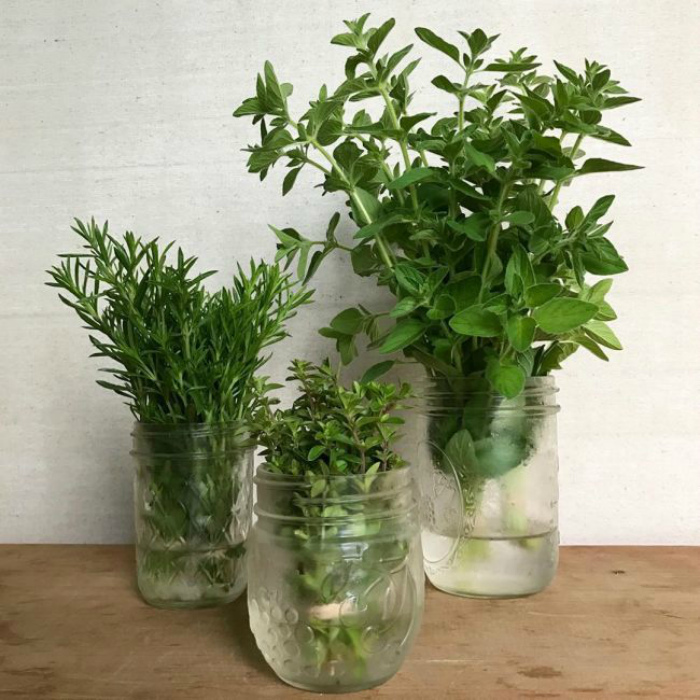 Пучки свежей зелени. | Фото: Hide Out Now. Чтобы мята, кинза, петрушка и укроп не завяли, храните их как букеты цветов - в стаканах с холодной водой.