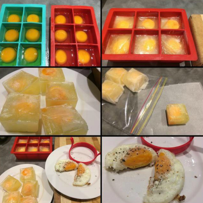 Замороженные яйца. | Фото: Hide Out Now. Весьма необычный, но действенный способ, который позволит продлить срок хранения яиц до года. Понадобится только форма для льда немного большего размера, чем обычная. Аккуратно разбейте в нее яйца, добавьте немного воды и отправляйте в морозилку.