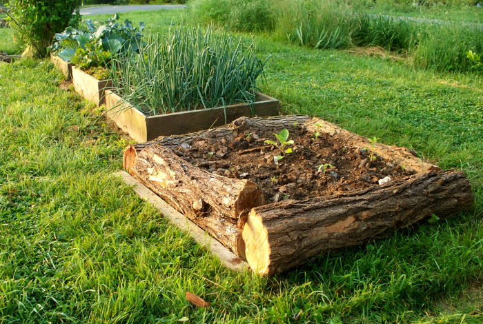 Клумба с бортами из бревен. | Фото: Sadrium.ru. Используйте массивные пни вместо бортиков для приподнятых грядок и клумб. Подобный дизайн выглядит органично и стильно, положительно влияя на ландшафт всего сада.