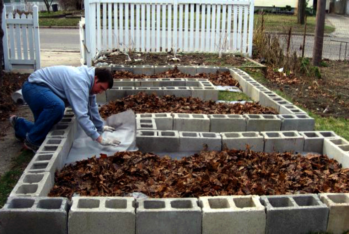 Бортиками для теплых приподнятых грядок могут стать обычные шлакоблоки. С их помощью довольно легко формировать разные размеры и контуры. Кроме того, шлакоблоки отлично сохраняют тепло, а значит все, что растет на такой грядке, будет созревать быстрее.