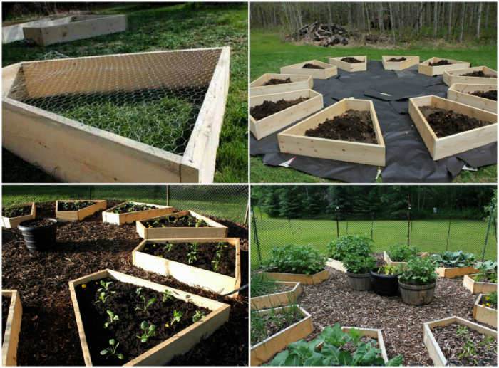 Красивая и лаконичная композиция из приподнятых грядок с деревянными бортиками, отдаленно напоминающими лепестки цветка, станет самым настоящим украшением любого огорода.