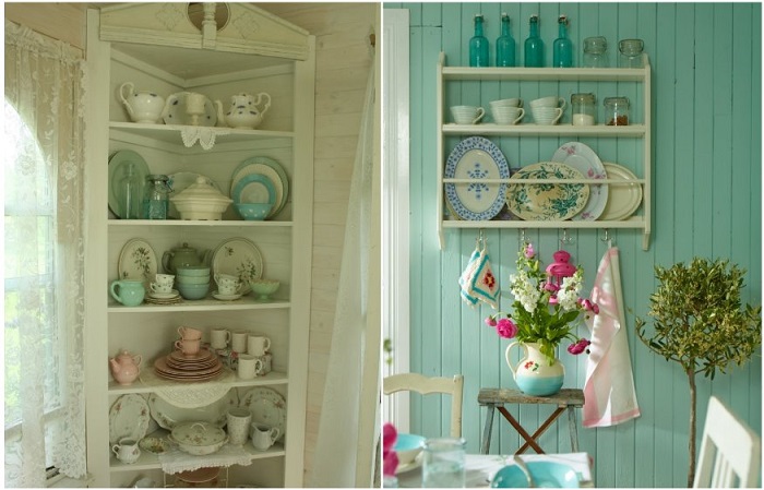 Идея 3: Декорируйте полки серванта или открытые полки на кухне