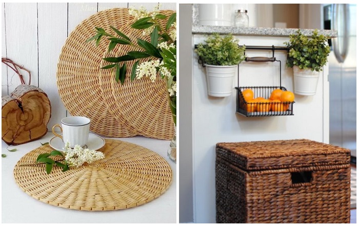 Плетеные декоративные элементы неизменно ассоциируются с летом и дачей. Возможно, именно корзинки, салфетки на стол и прочие аксессуары смогут стать финальным штрихом в том, чтобы квартира получила дачный шарм и подходящую атмосферу. Обратите внимание: Плетеная мебель также станет отличным вариантом, особенно, если разместить ее на лоджии или балконе. Впрочем, если вы захотите оформить кухню в стиле прованс или кантри, то стулья или кресла отлично будут смотреться и там.