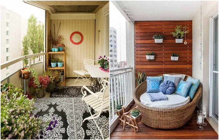 Кстати, о балконе. Если он до сих пор служит местом для хранения хлама и ненужных вещей, срочно исправляйте эту ситуацию. До наступления тепла еще есть немного времени, так что вы можете успеть. Для отделки стен лучше выбирать простые материалы, например, вагонку или обычную краску. Если же балкон не застеклен, то все силы нужно будет направить на отделку пола. Выбирайте материалы, устойчивые к ветру, осадкам, солнечным лучам. Идеальным вариантом станет специальный настил для садовых дорожек и террас. После того, как отделочные работы будут закончены, займитесь расстановкой мебели. На балконе отлично будут смотреться стулья, стол, несколько полок для хранения мелочей, и, конечно, плед, а также несколько подушек. Если вы не видите смысла делать здесь обеденную зону, можете просто организовать филиал дачного сада и заниматься выращиванием комнатных растений.