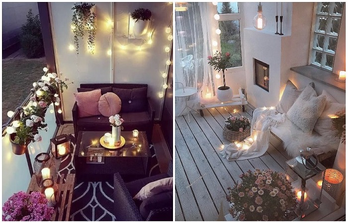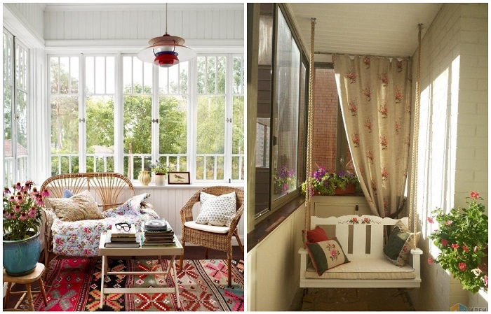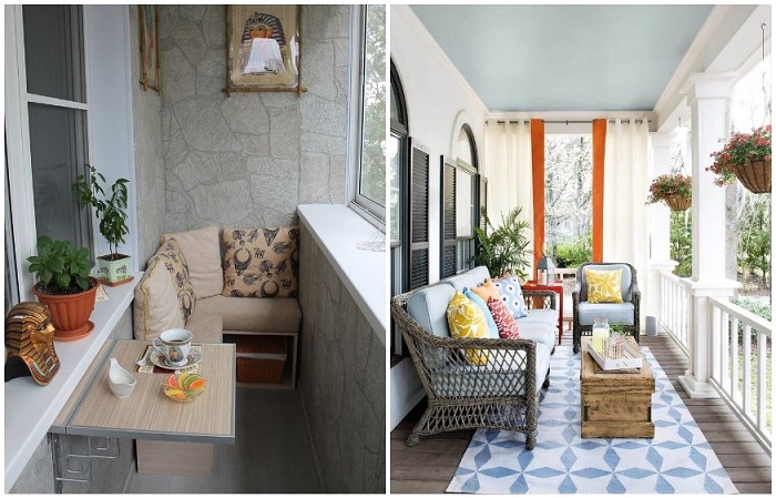 Представить красивый балкон или веранду невозможно без грамотно подобранного текстиля. Вы можете отдать предпочтение пушистым коврикам, скатертям, шторам и прочим аксессуарам, специально предназнеченным для применения на улице. Конечно, можно остановиться и на классических вариантах, которые вы используете в квартире, но неизвестно, сколько они прослужат, так как подобные вещи обычно не устойчивы к внешним негативным факторам. Также не забудьте о пледах и подушках – они помогут насладиться природой и свежим воздухом даже в том случае, если на улице будет не слишком тепло. Плюс такие уютные мелочи создадут обволакивающую атмосферу, наполнят пространство красивыми и комфортными фактурами.