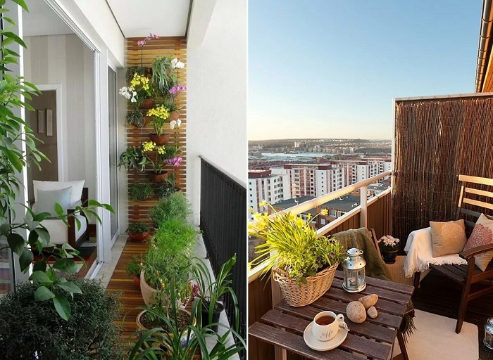 Этот пункт гармонично дополняет предыдущий. Даже если с вашего балкона открывается прекрасный вид на лес или на дачном участке, где располагается беседка, все цветет буйным цветом, это не значит, что нужно оставлять свою релакс-зону без дополнительного озеленения. В этом вопросе вас может ограничивать лишь ваша фантазия – можно оформить помещение растениями в горшках, кашпо или ящиках, цветочными композициями, флорариумами. Обратите внимание на вертикальные стойки для кашпо, а также модели, которые специально созданы для размещения на балконных перилах.
