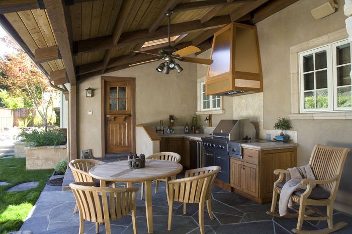 На террасе можно разместить плиту и мойку для удобства. / Фото: Ukr-dom.com.ua