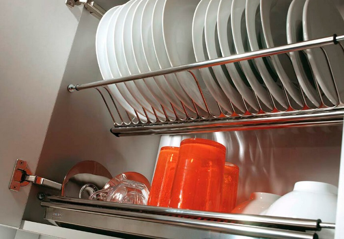 Если в ванной взгляд всегда цепляется за заполненную сушилку для одежды, то на кухне эту роль играет сушилка для посуды. Даже если у вас идеально чистые и очень красивые тарелки, им место в навесном шкафчике или на открытой полке, но никак не в сушилке. Заполненная корзина в 95% случаев создает впечатление незавершенной работы, и делает интерьер захламленным, неаккуратным. Поэтому либо сразу разбирайте сушилку после окончания работы, либо прячьте ее в ящик. Правда, во втором случае нужно будет не забывать часто вытирать поддон и следить за уровнем влажности, иначе плесень не заставит себя долго ждать.
