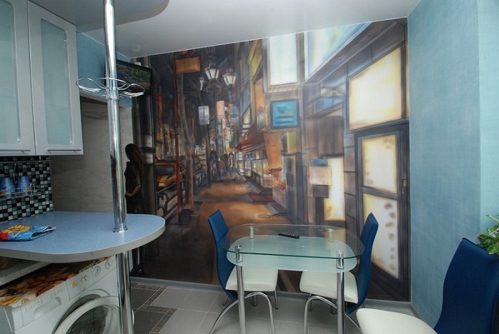 Фотообои на кухне выглядят неуместно. / Фото: Dizainkyhni.com