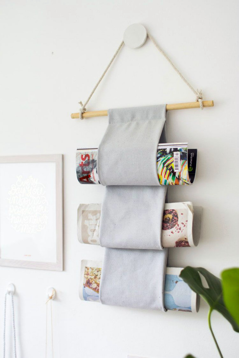 Подвесной держатель для газет. | Фото: MondoDesign.it. Тканевый подвесной держатель для газет и журналов станет не только практичной системой хранения, но и оригинальным украшением одной из стен вашего жилья.