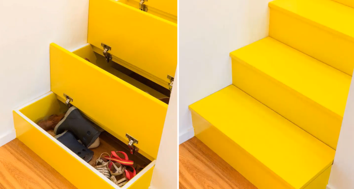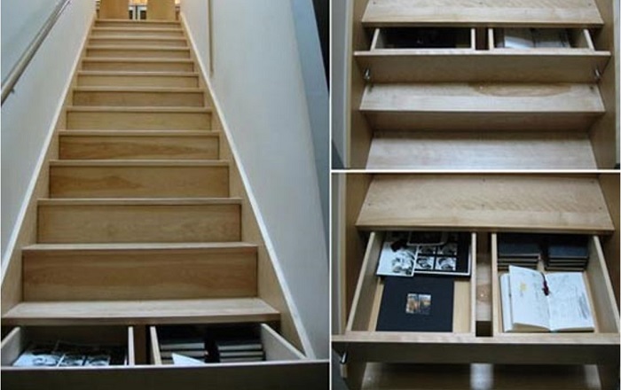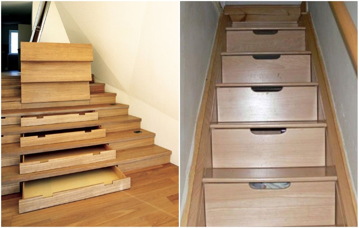 Нельзя оставлять ящики, которые спрятаны в лестнице отрытыми. | Фото: pinterest.com.