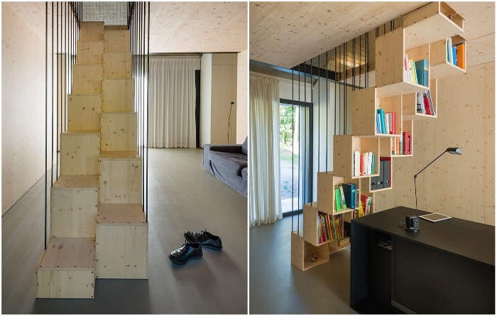 Библиотеку тоже можно спрятать в ящики под ступени. | Фото: secrets-deco.fr.