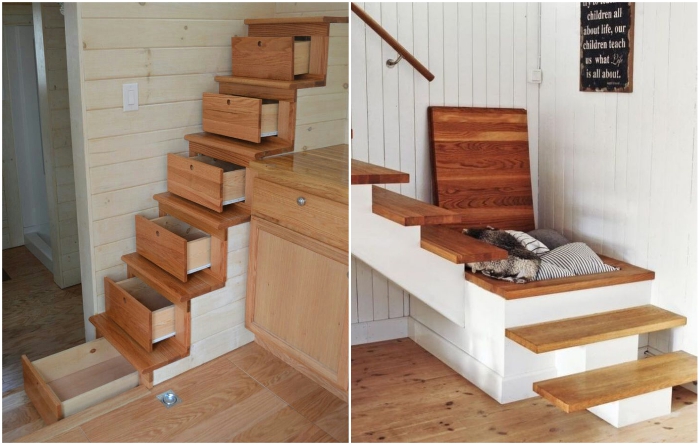 Многофункциональная лестница с ящиками в ступенях: компактно, оригинально. | Фото: asusfone.ru