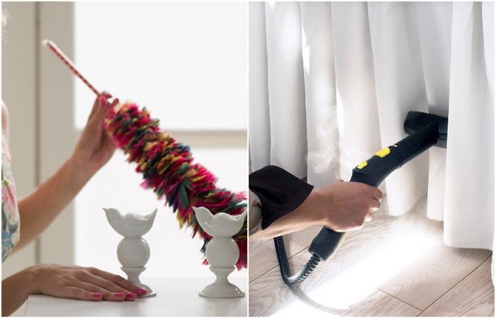 К сожалению, если предварительно не устранить пыль со всех поверхностей, то от влажной уборки полов не будет никакого толку. Неубранная пыль в короткие сроки осядет на вымытом полу и сведет на нет все ваши усилия и потраченное время. Чтобы уборка была максимально эффективной, начните с протирания пыли влажной тряпкой из микрофибры, а затем приступайте к очистке полов. Получится быстрее и качественнее.