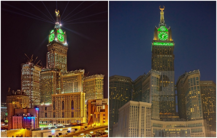 В ночное время на башне с часами загораются миллионы огней (Royal Clock Tower, Саудовская Аравия). | Фото: pinterest.co.uk/ worldstrides.com.