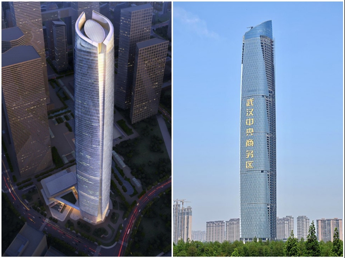 Небоскреб Center Tower в Ухане поднялся в высоту на 438 м (Китай). | Фото: interestingengineering.com/ heightpedia.com.
